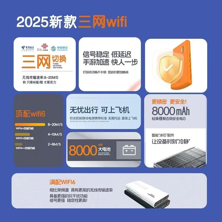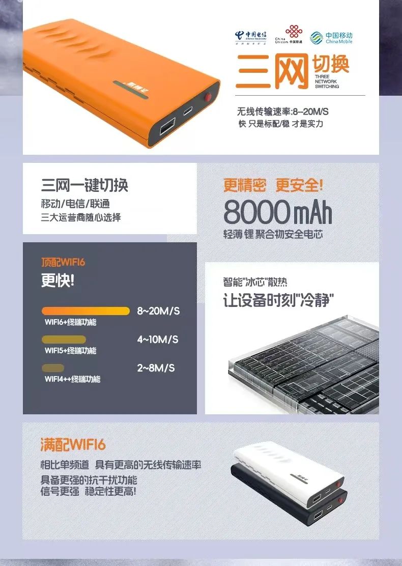 不管联通还是电信网速都不错的,我测试是8000电池充电宝款,双网通wifi6!