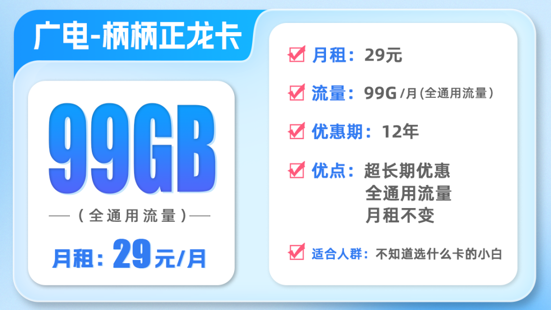 想选择29元大流量卡且想要长期优惠的同学可以选择第一张正龙卡。