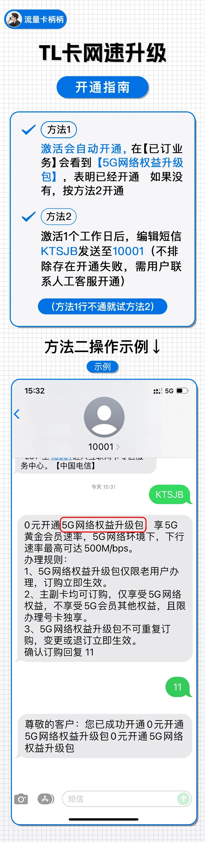 TL卡的免费升级畅享速率的攻略柄柄放在下面了,刚激活第一天基站数据交互需要点时间,建议激活第2天再尝试下面的方法升级网速,成功率会更高一点。